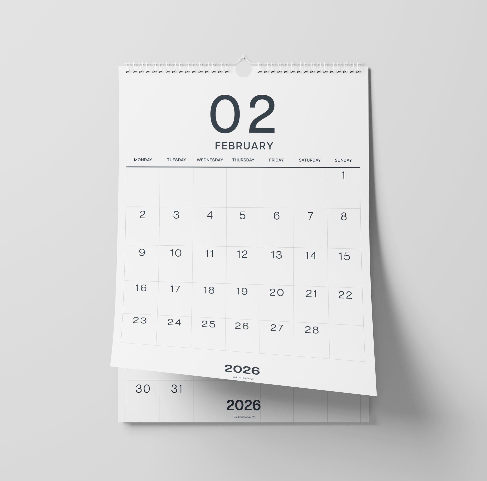 This minimalist wall calendar features striking black text on crisp white pages, with each month printed on a separate sheet of smooth, 200gsm paper. Designed to be easy on the eyes and effortless to use, it’s ideal for planning, tracking, and staying organised all year long.